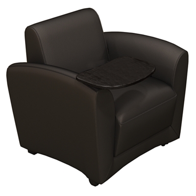 Long Reach Tablet Arm for Touchscreen devices. Grazie Stack Chair with Tablet Arm. This lecture room chair is designed with a one-piece polymer shell upholstered pads and a large non-folding writing tablet.